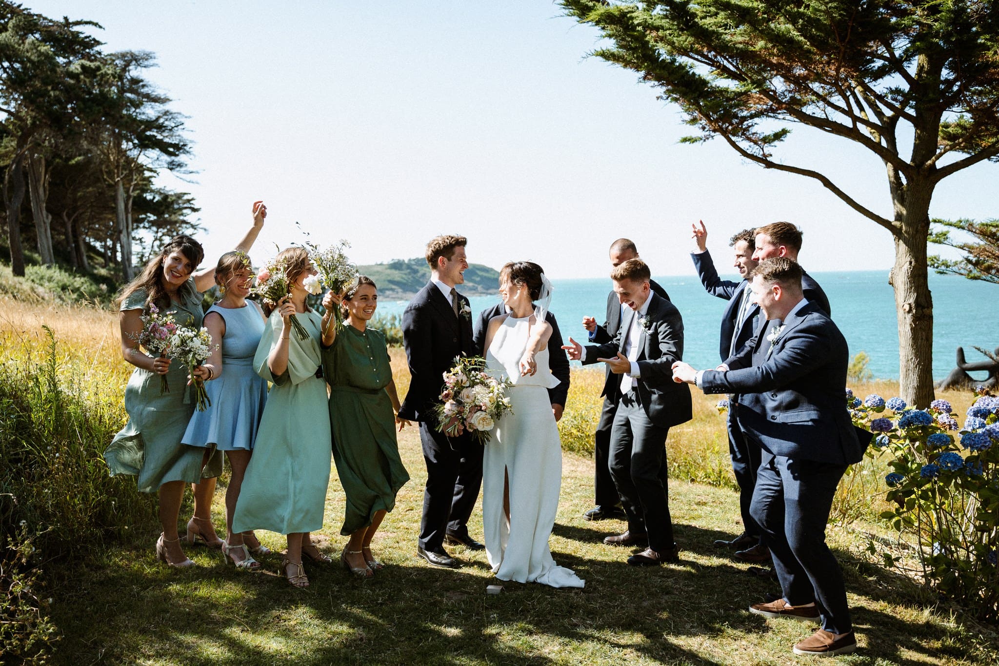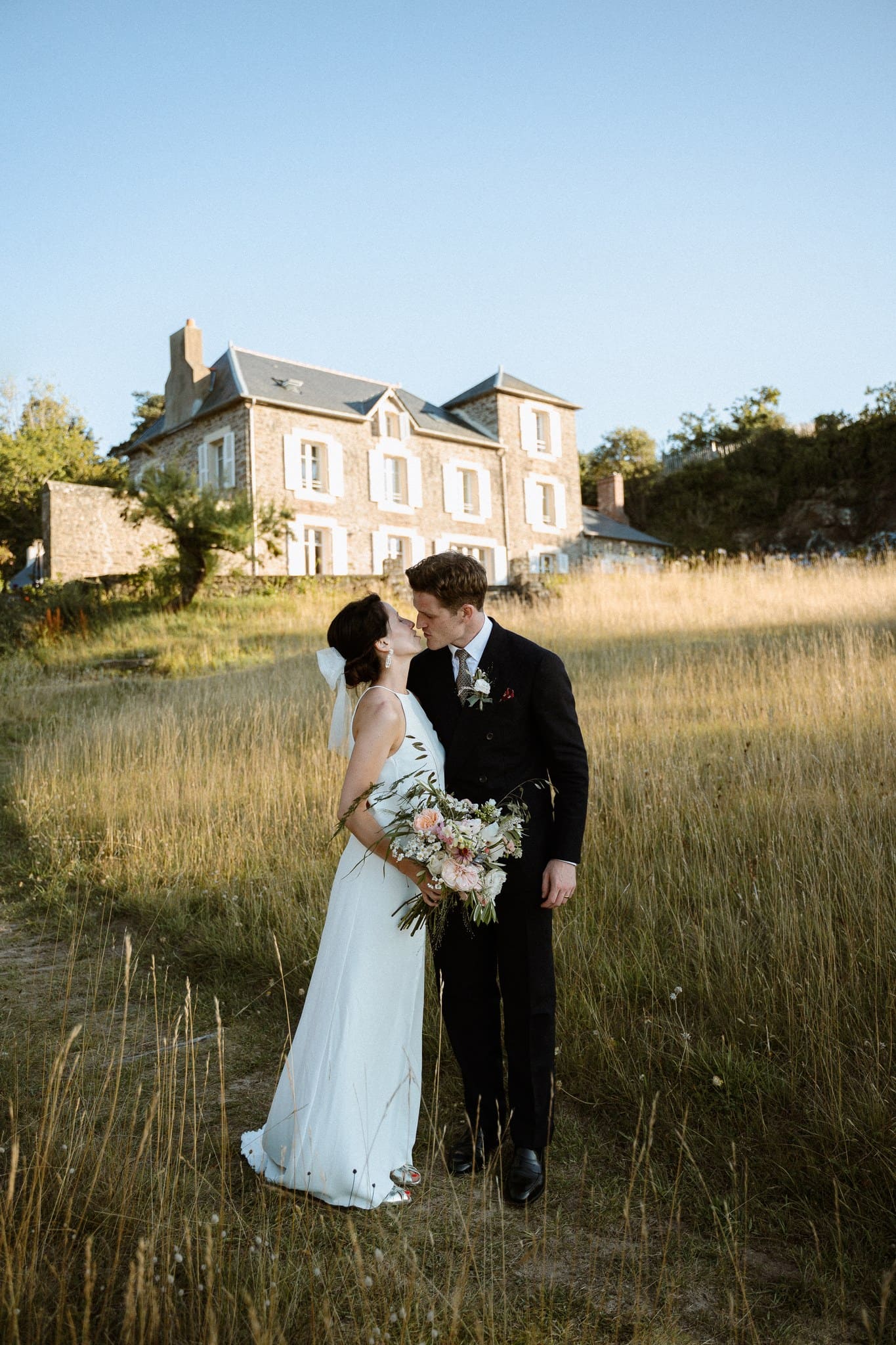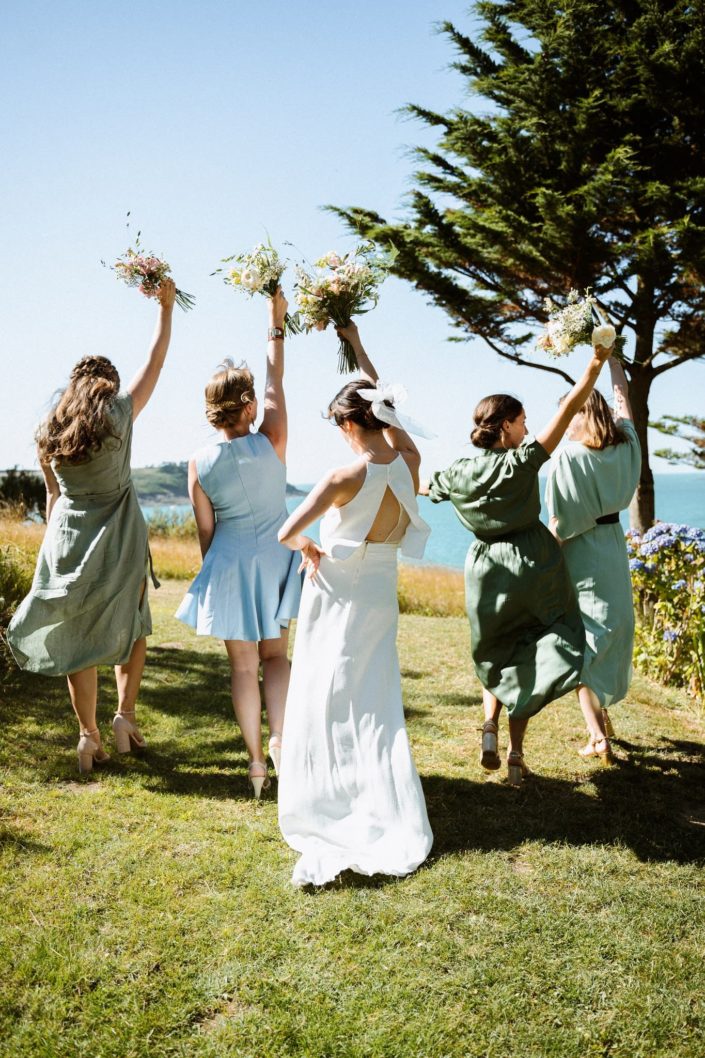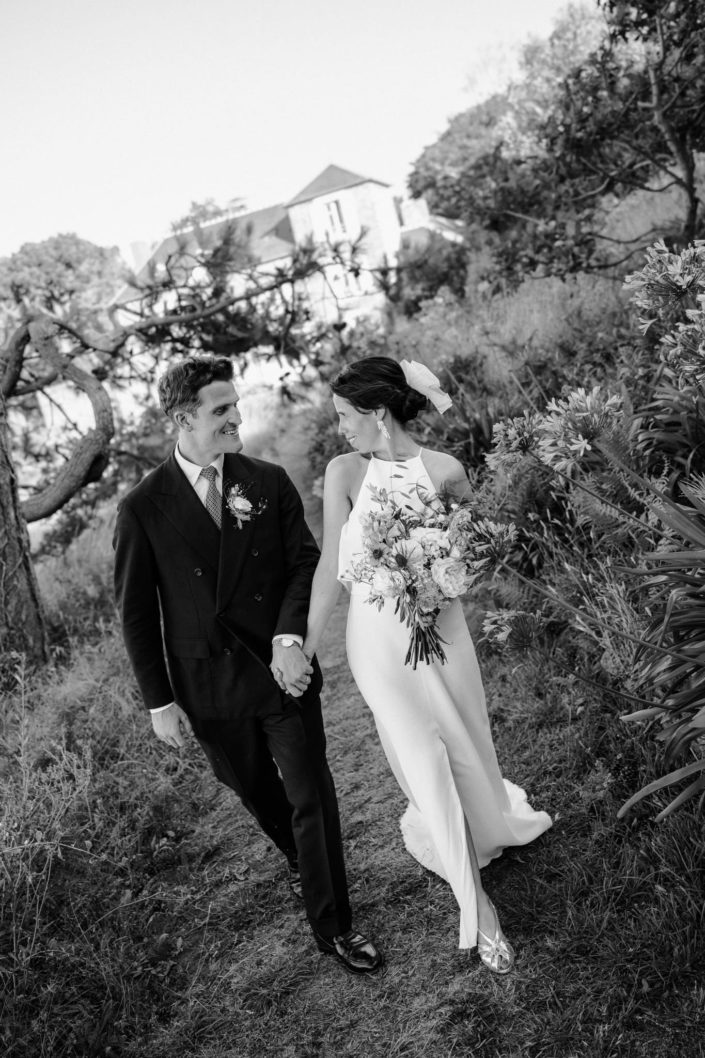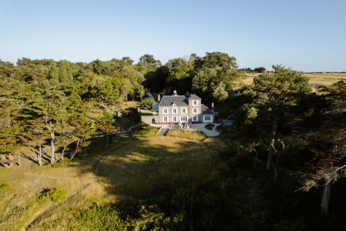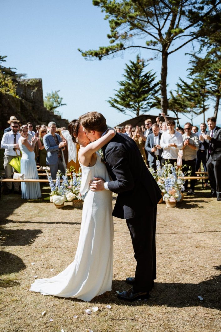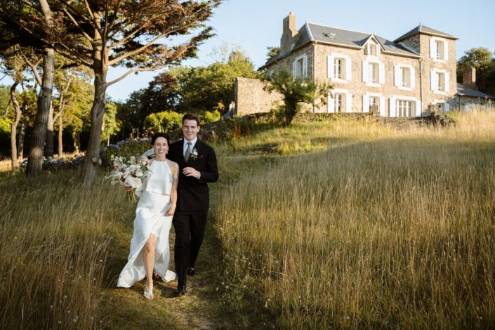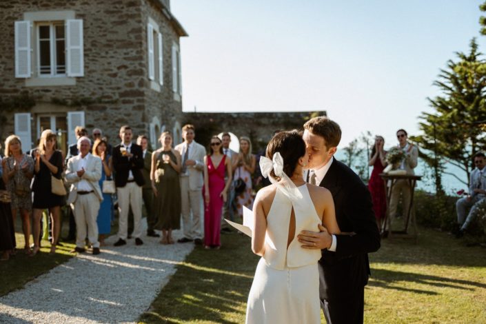 Nous avons kidnappé Flore et Jack, direction l’arrière de la bâtisse pour ressentir et voir la mer sur les photos et la vidéo et surtout pour que nos mariés profitent de ce cadre magique. Ils se sont laissés porter et ont vécu ce moment comme une jolie pause dans cette folle journée.
