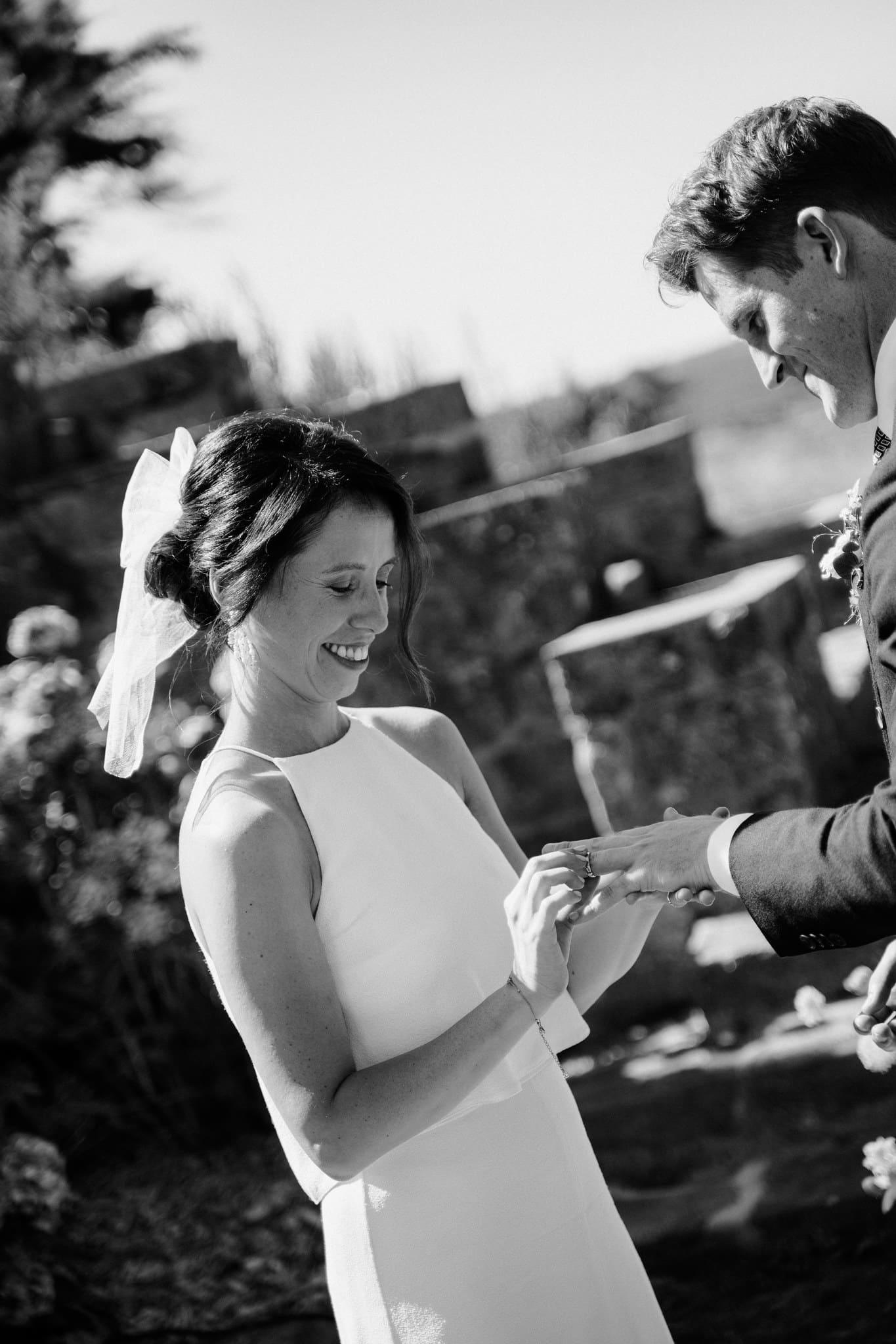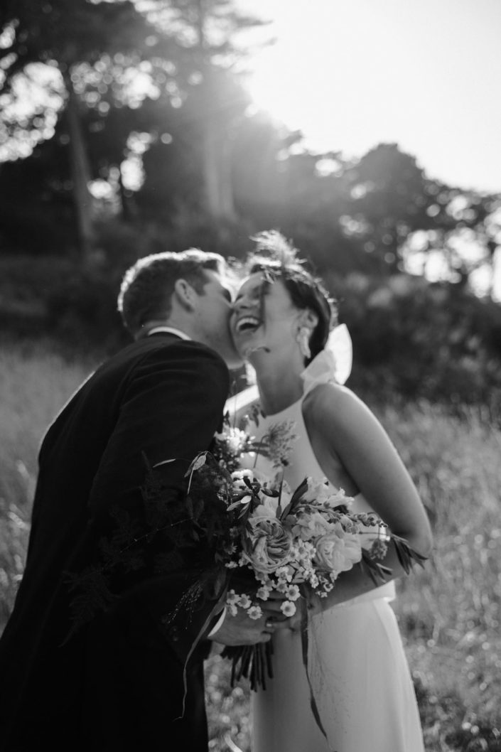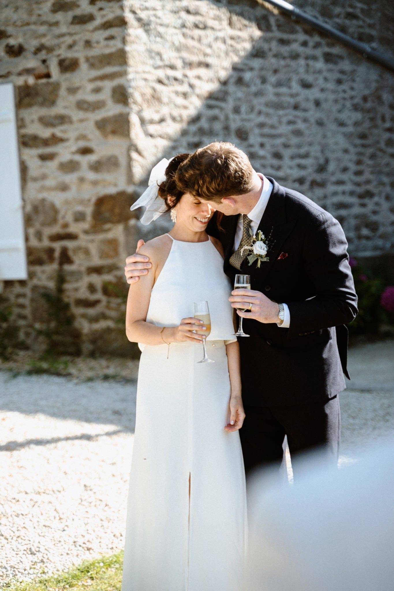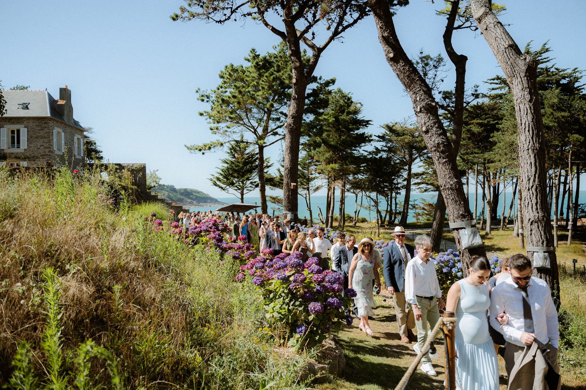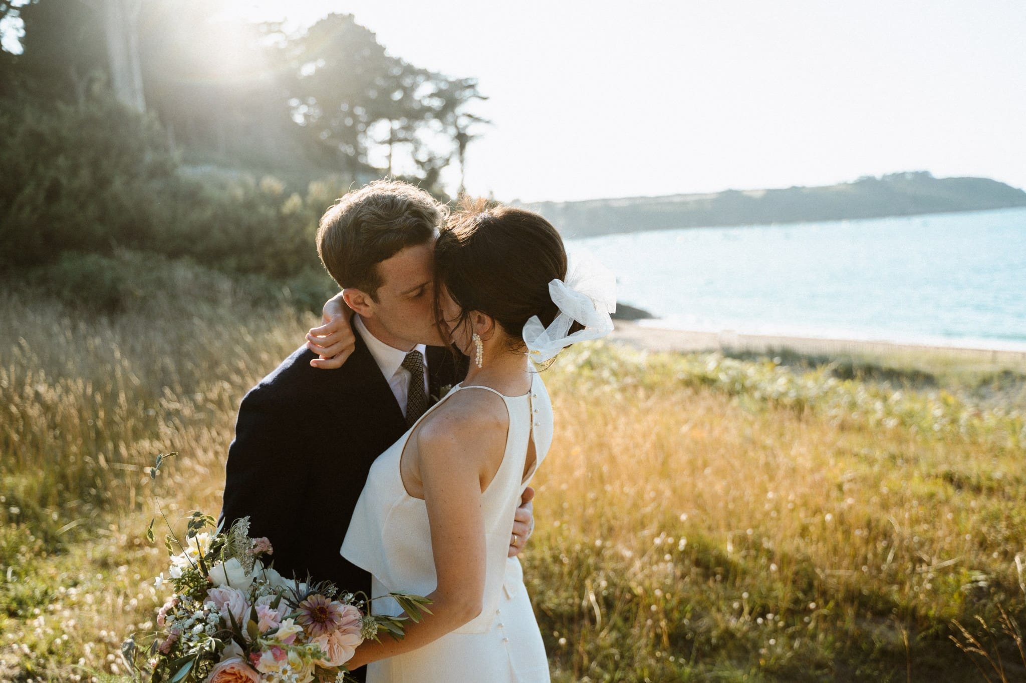 Nous avons kidnappé Flore et Jack, direction l’arrière de la bâtisse pour ressentir et voir la mer sur les photos et la vidéo et surtout pour que nos mariés profitent de ce cadre magique. Ils se sont laissés porter et ont vécu ce moment comme une jolie pause dans cette folle journée.