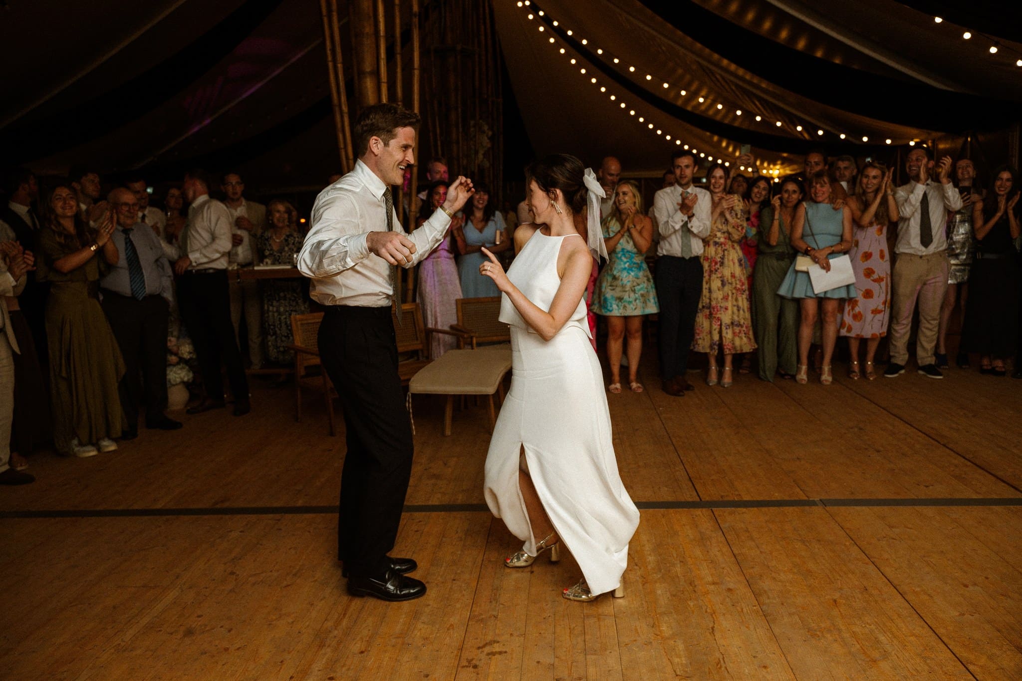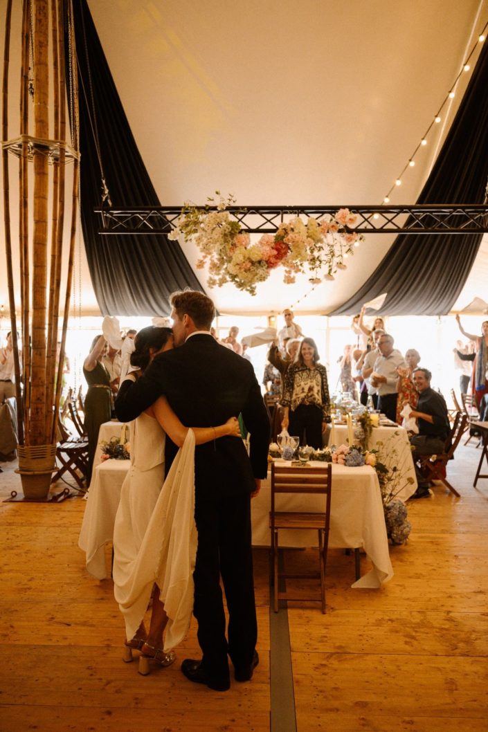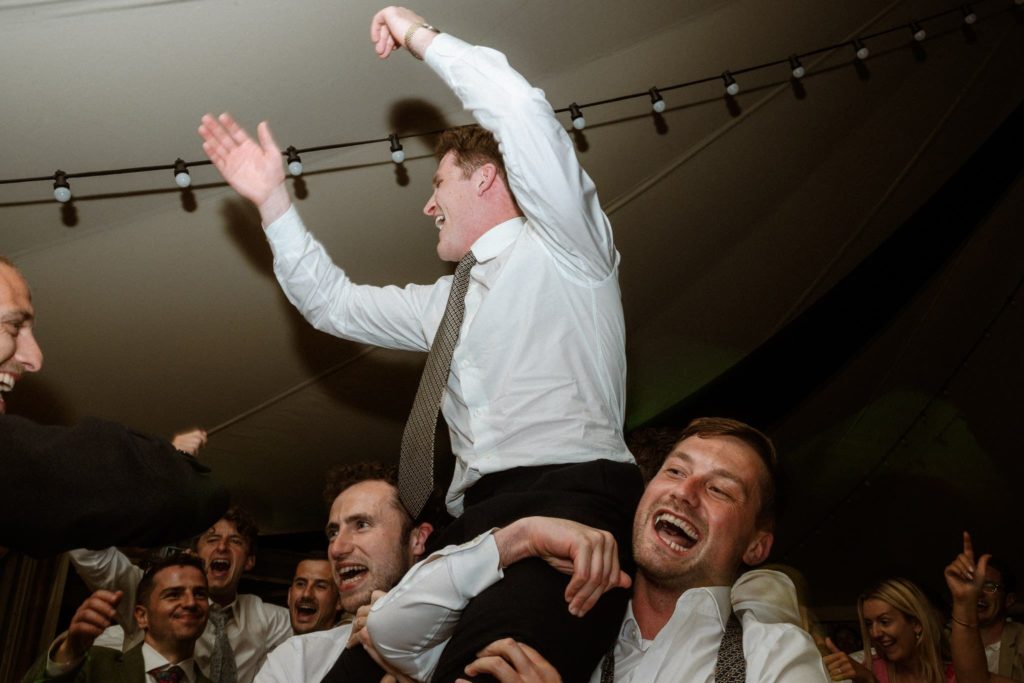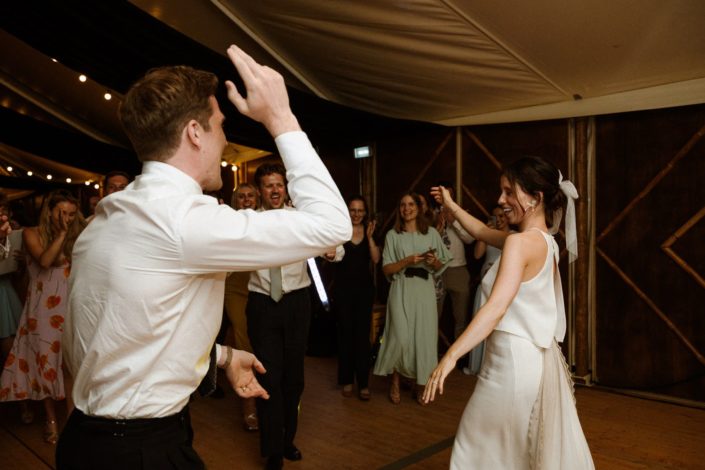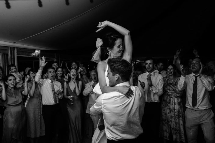 Tout le monde est rassasié, en route vers la piste de danse, découvrir l’ouverture de bal de nos jeunes mariés et spoiler alert ! il y a eu du porter ! S’en ai suivi des pas de danses endiablés de tous les invités : Quand les traditions françaises et l’énergie britannique se rencontrent sur la piste, c’est quelque chose.