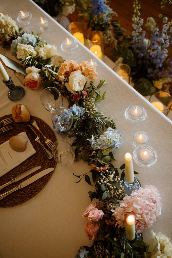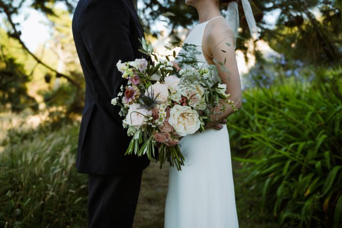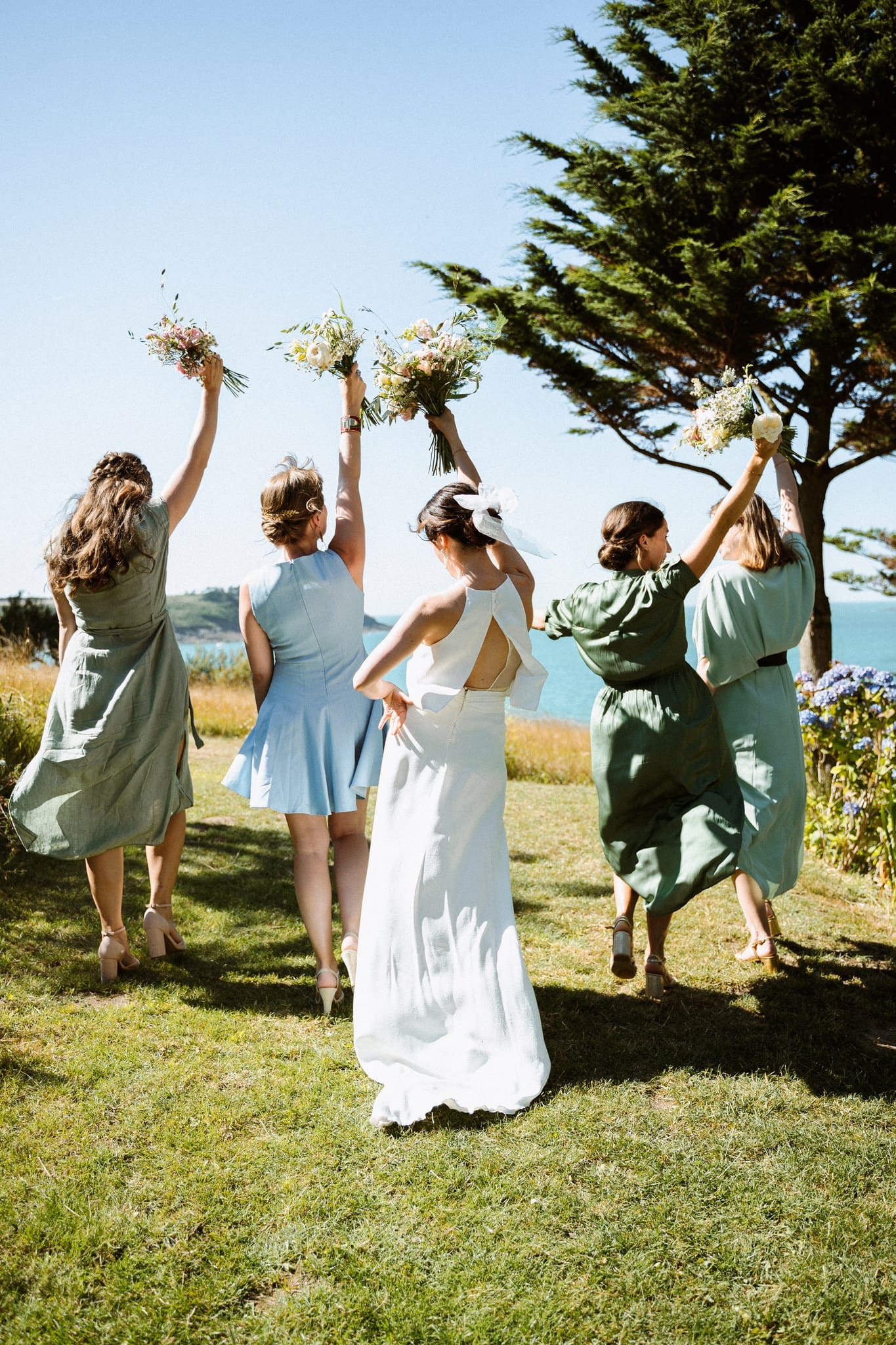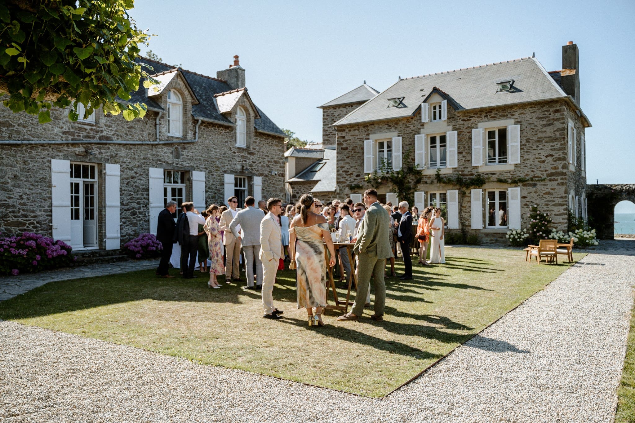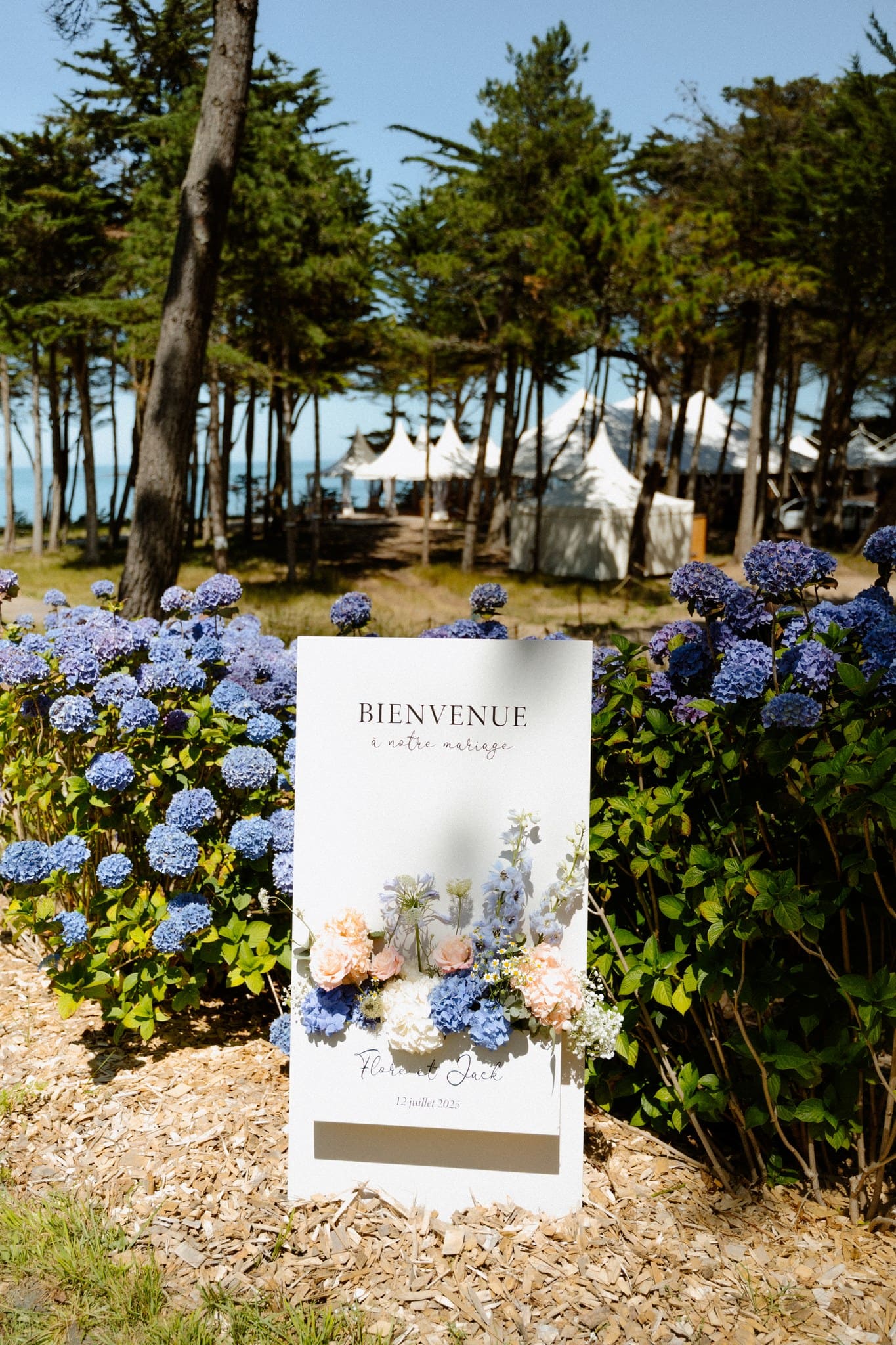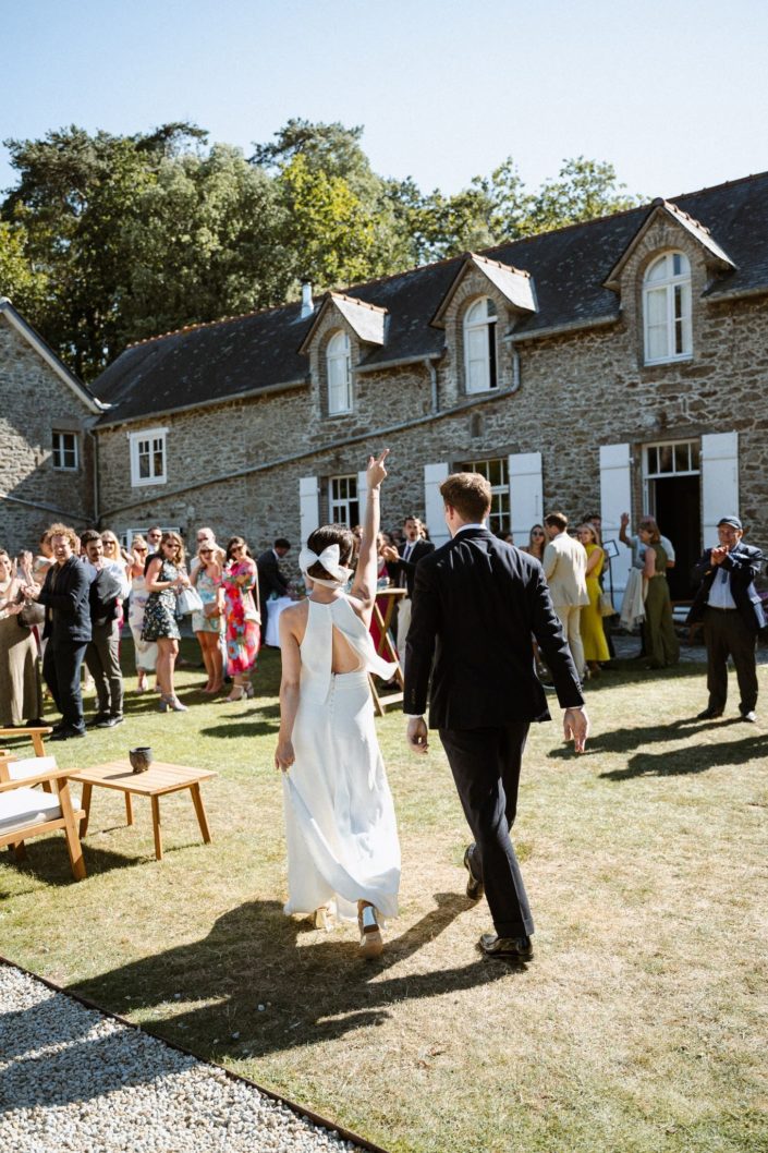 Des années plus tard, après être partie vivre en Angleterre où elle a rencontré Jack, celui-ci la demandait en mariage. Flore a donc commencé à se renseigner sur les domaines en Bretagne. C’était important pour elle de se marier ici. Quand elle s’est rendu compte que la bâtisse qu’elle observait petite était devenue un lieu de mariage, l’évidence s’est imposée : célébrer leur mariage franco-anglais à Saint-Malo, dans ce lieu chargé de souvenirs. Dire “oui” face à la mer, là où tout a commencé.
