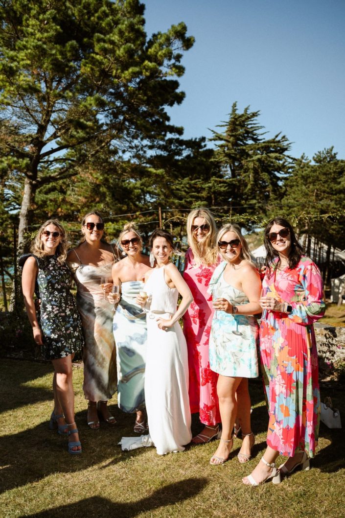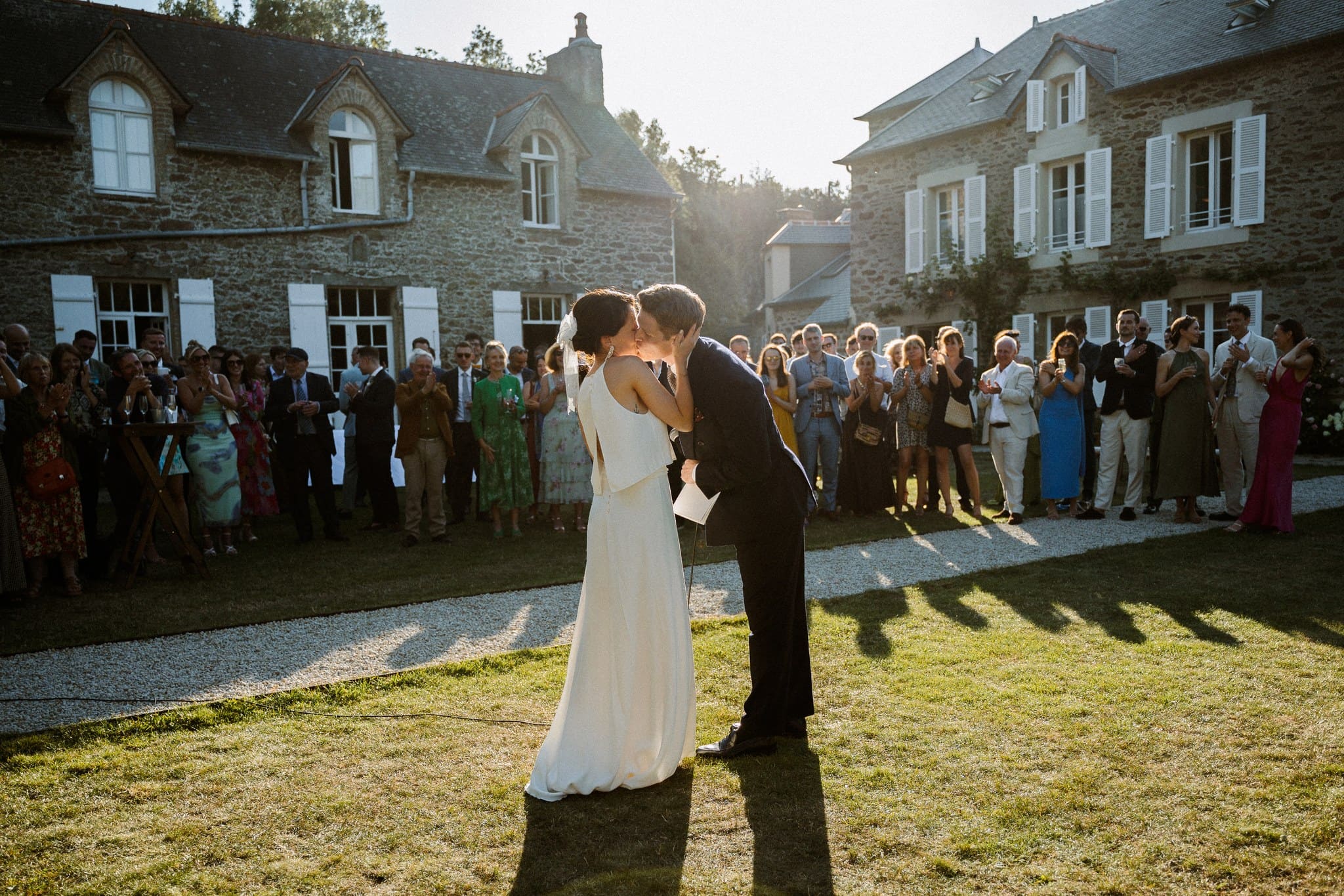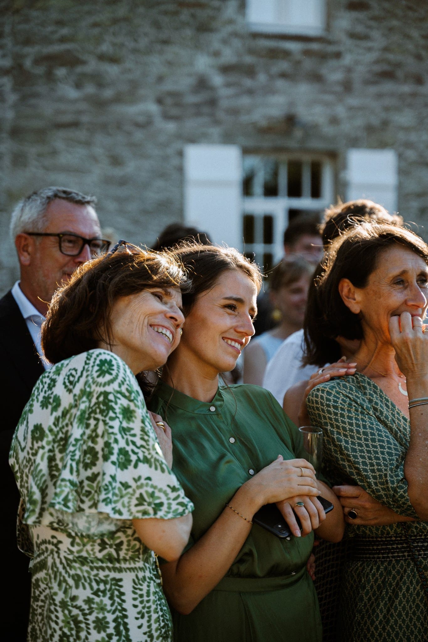 La cérémonie laïque est terminée, il est presque temps pour nos mariés de savourer ce cadre idyllique, les douceurs du traiteur et les premières bulles. Mais avant ça, les mariés souhaitaient tout de même quelques photos de groupe. Nous avons choisi un endroit dos au soleil pour que les invités ne subissent pas trop sa chaleur, qu’ils puissent ouvrir les yeux et surtout passer un bon moment. Cela nous tient à cœur que les photos de groupe soient dynamiques et vivantes.