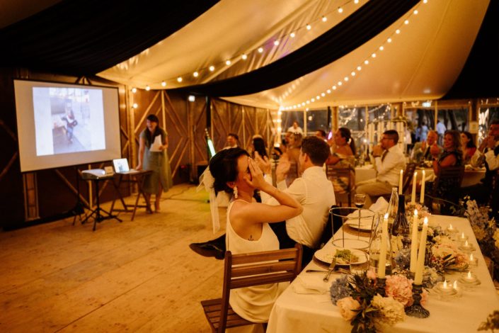 Pendant ces préparatifs, nous avons eu le droit de goûter au délicieux Tiramisu du papa de Flore et assister aux préparatifs secrets du diaporama préparé par les témoins pour les mariés le soir même. Nous adorons être dans les confidences de vos témoins.