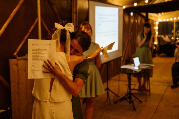 Une fois terminée, cette fois-ci c’est la bonne, il est temps de profiter des invités, d’immortaliser toutes ces jolies interactions et les discours émouvants des proches que Flore et Jack ont pu écouter à ce moment-là.