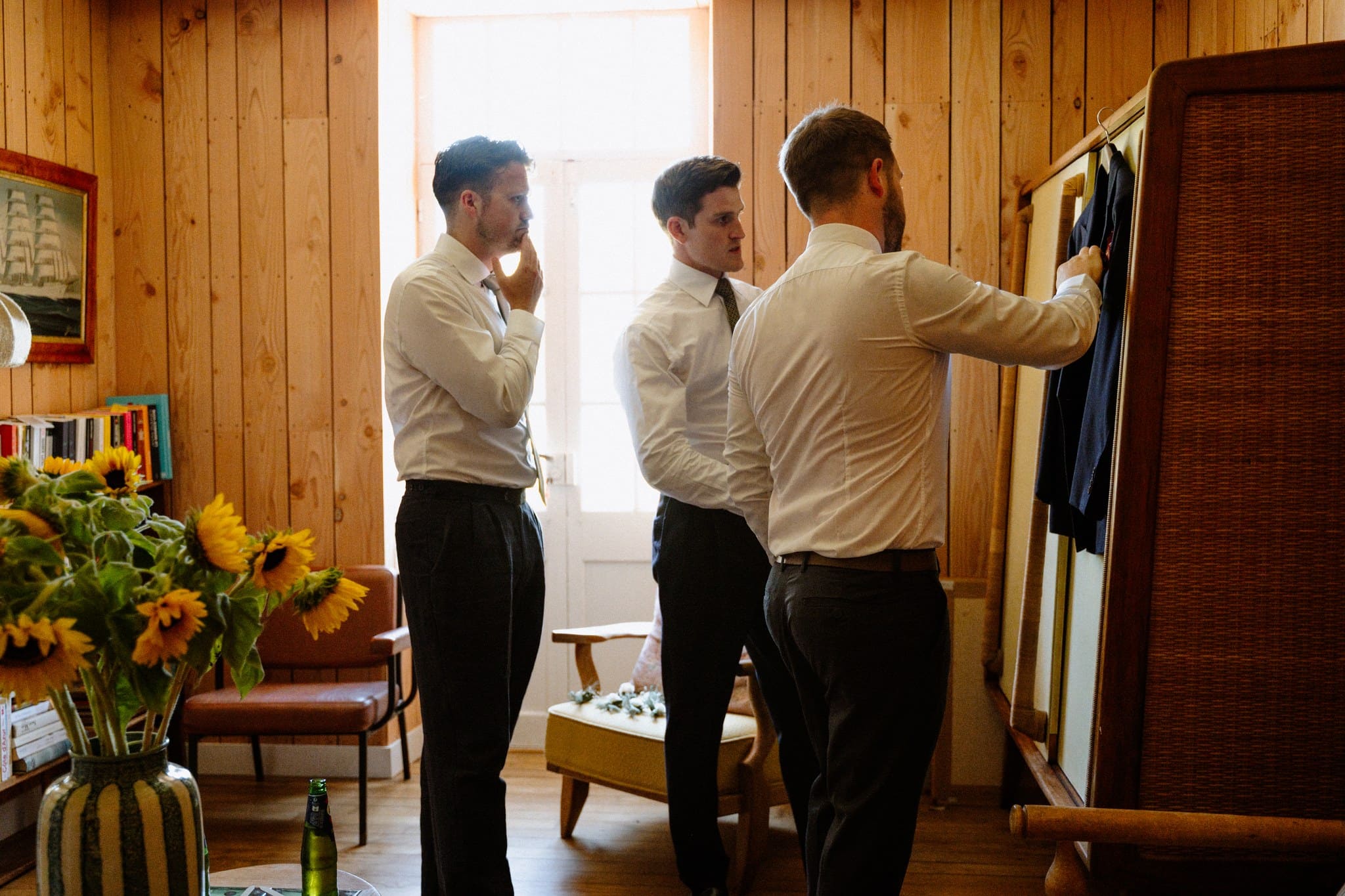 Ensuite, nous sommes allés voir Jack, nous l’avons prévenu que ses préparatifs allaient bientôt commencer et nous nous sommes hâtés de rassembler tout ce dont il aurait besoin pour ce moment : costume, chaussures, boutonnière, bières !
