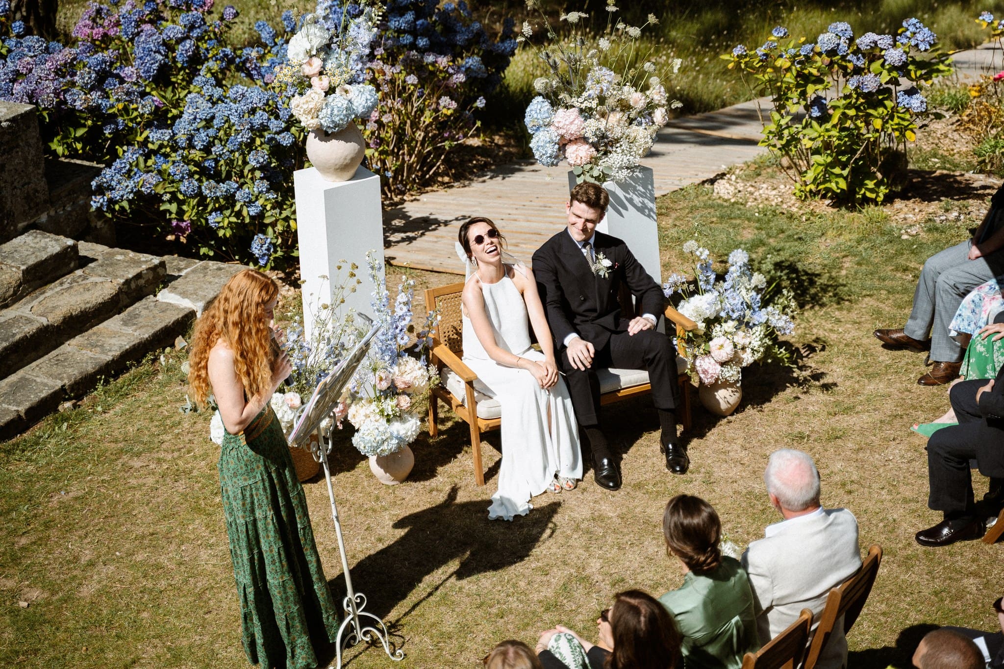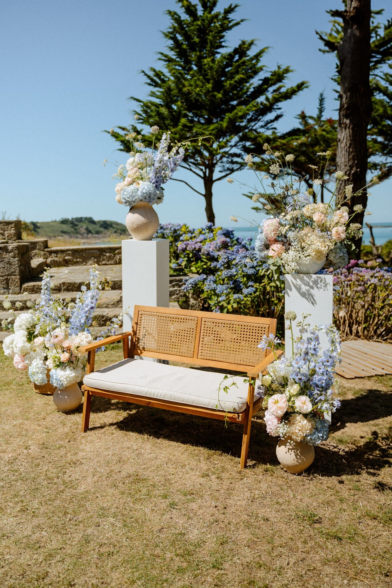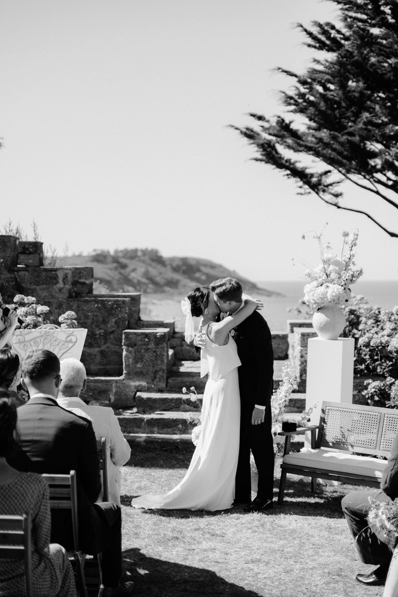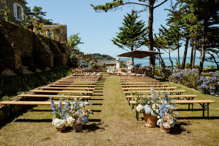 Juste avant que la cérémonie laïque ne démarre, nous avons pris une quinzaine de minutes pour aller l’immortaliser vide, avant que tout le monde ne s’installe pour mettre en avant le travail remarquable de la fleuriste par exemple et de cette vue sur la mer qui était hypnotisante.