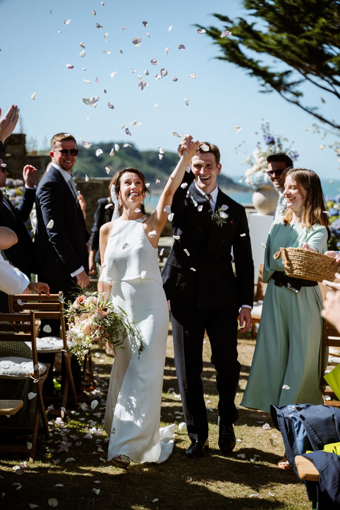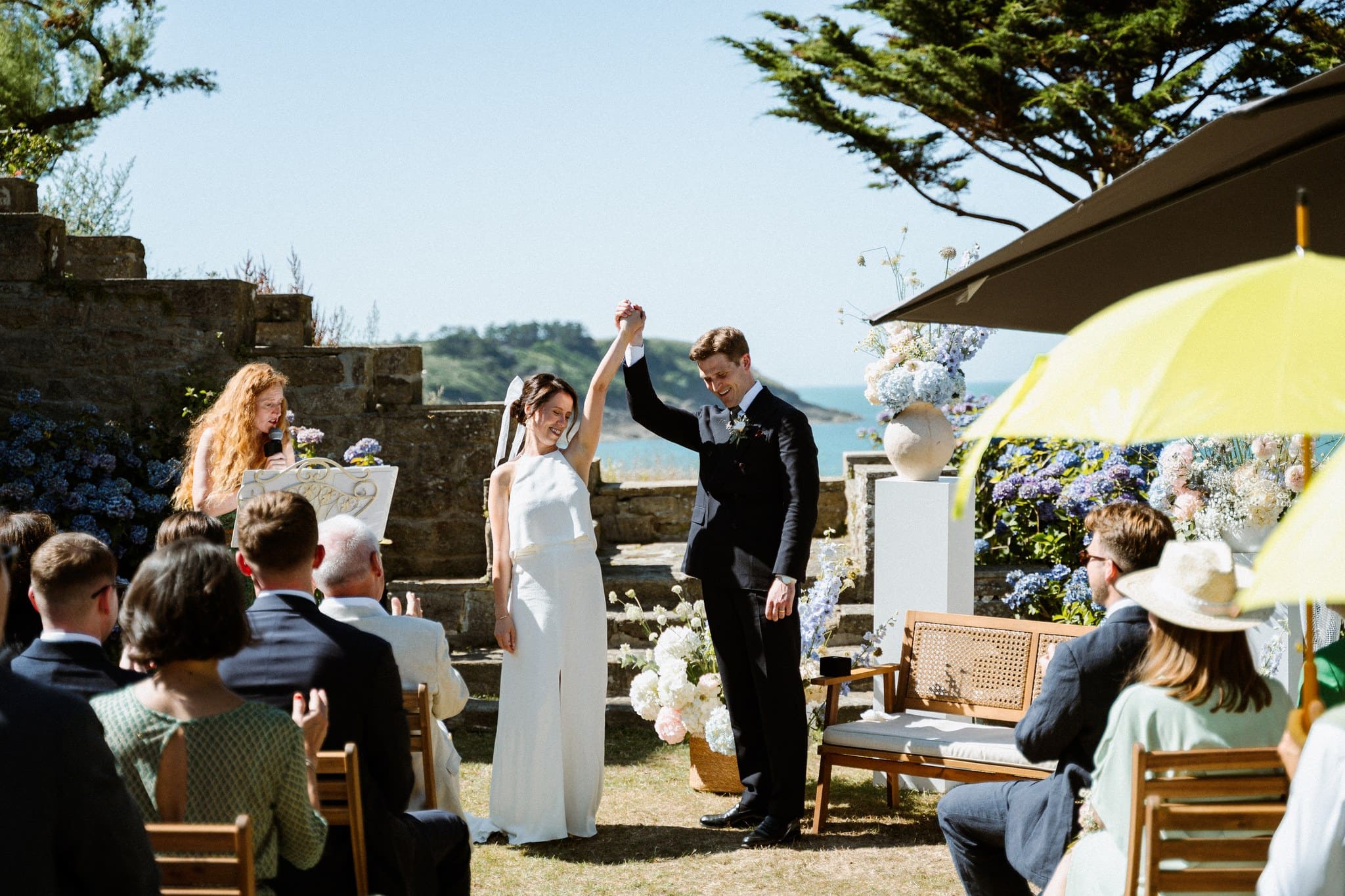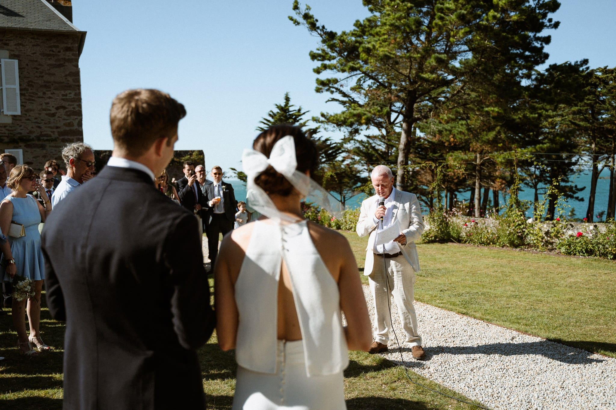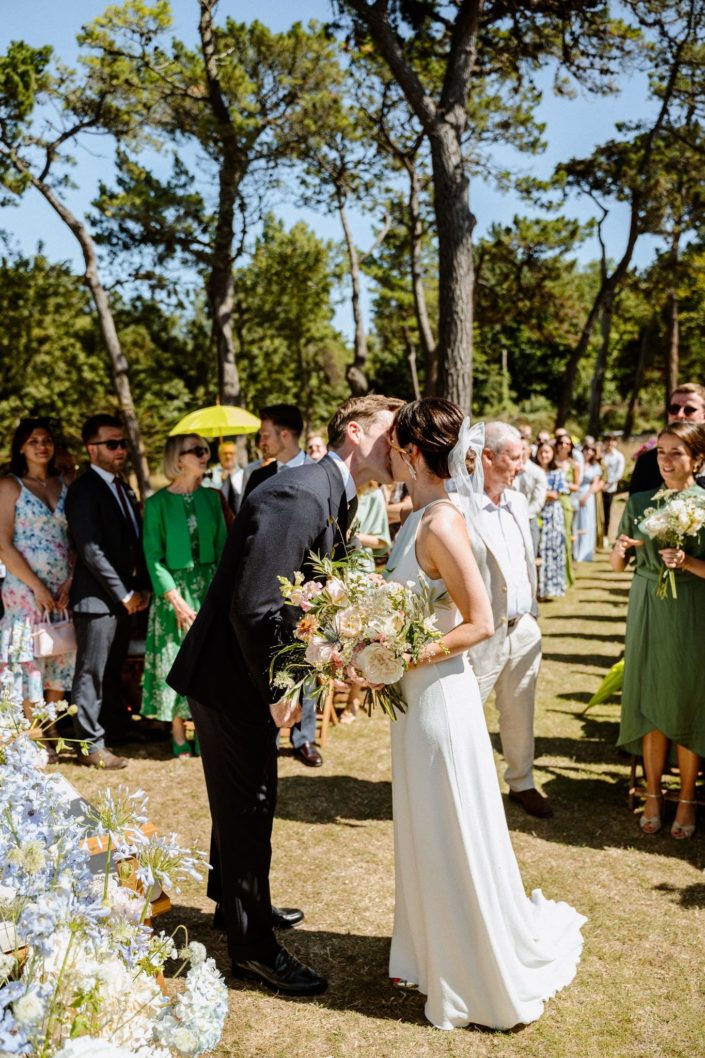 Nous avons assisté à une cérémonie franco-anglaise qui retraçait à merveille l’histoire de nos deux mariés. La canicule n’a pas empêché la beauté de ce moment, l’air de la mer était d’autant plus savoureux.
