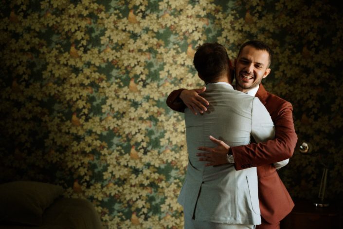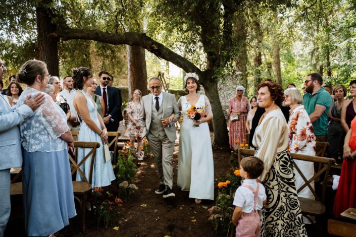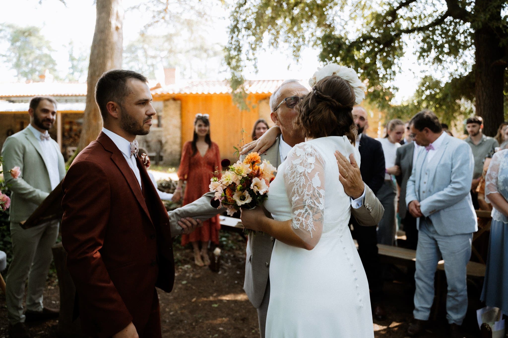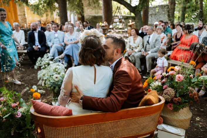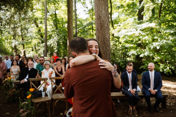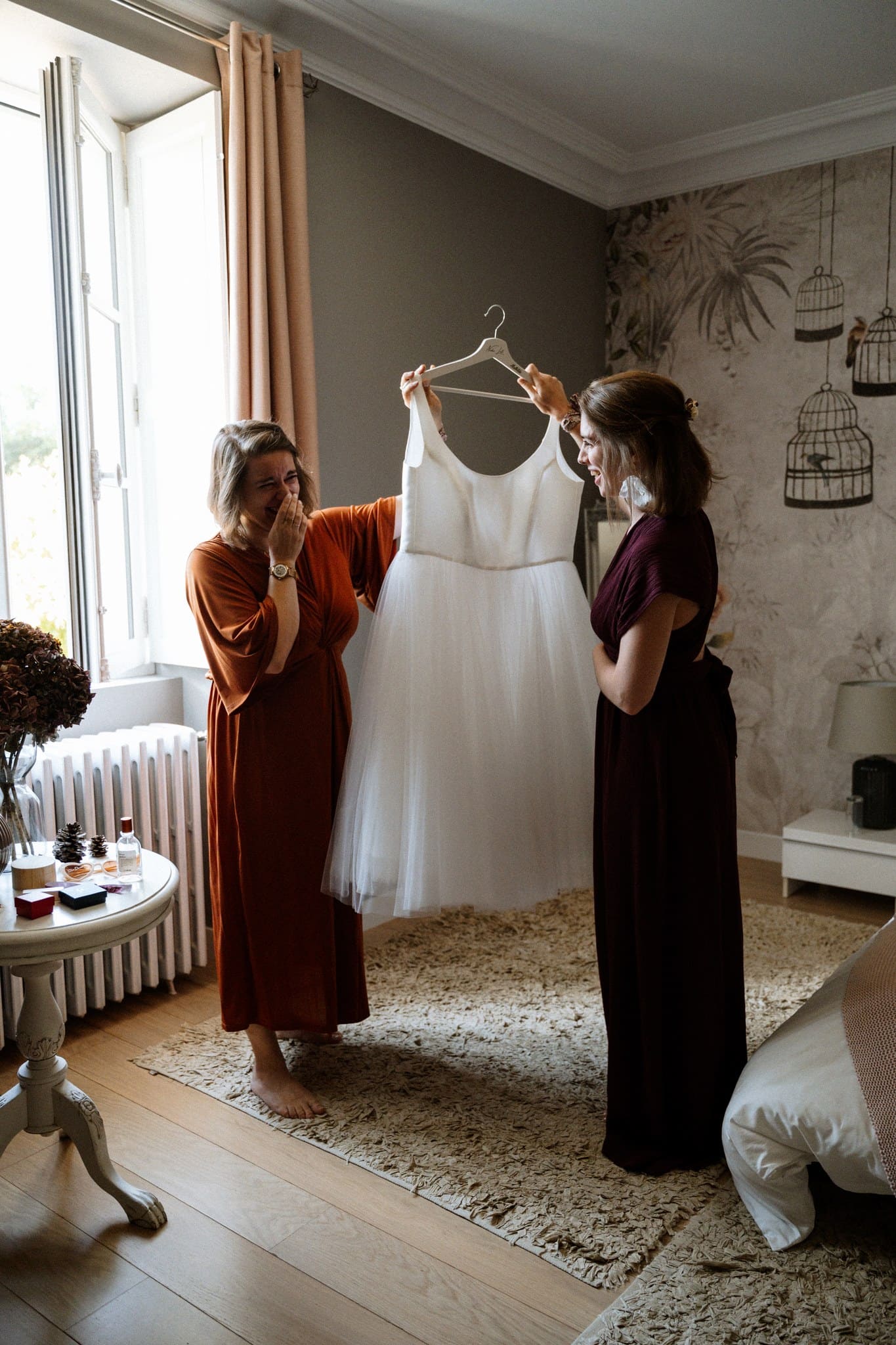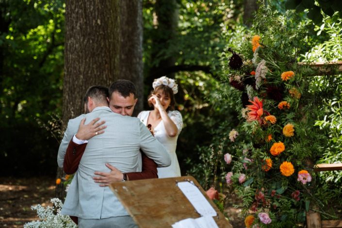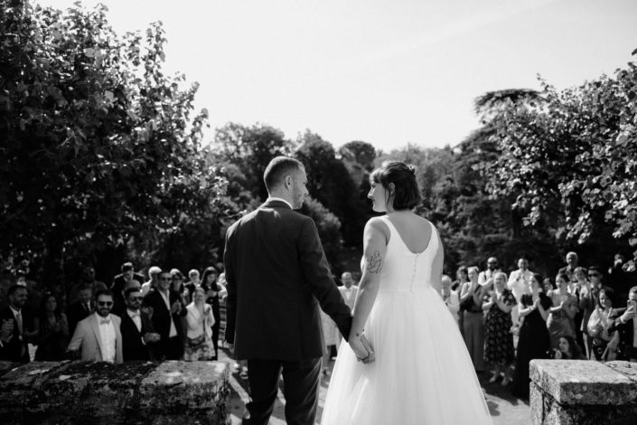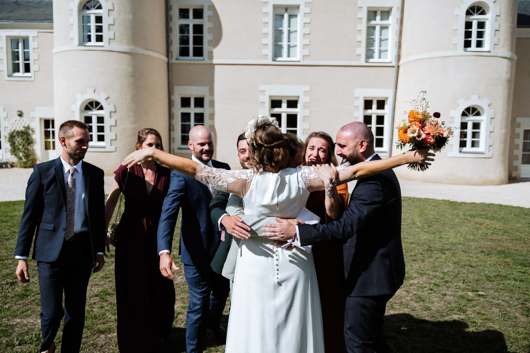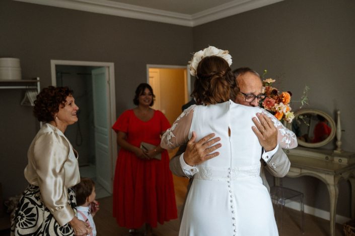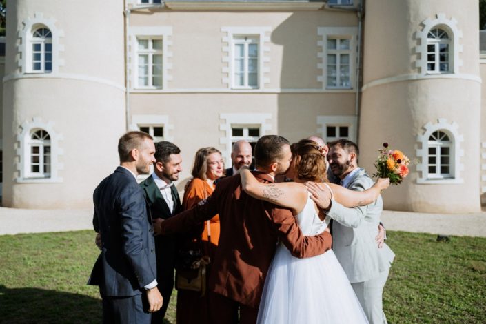 Pour la 2e robe, Mathilde a privilégié sa famille et a fait une découverte avec son papa dans la chambre des préparatifs. Puis, elle seule et de nouveau avec les copains, toujours devant le château et enfin Martin a eu le droit de la découvrir pour sa deuxième robe de mariée uniquement à la cérémonie. Autant vous dire que niveau émotion, nous aussi on en a pris pour notre grade. Ce sont des moment que l’on aime anticiper en choisissant le lieu, le moment par exemple, pour que les mariés n’ont qu’à savourer et vivre pleinement leurs émotions.