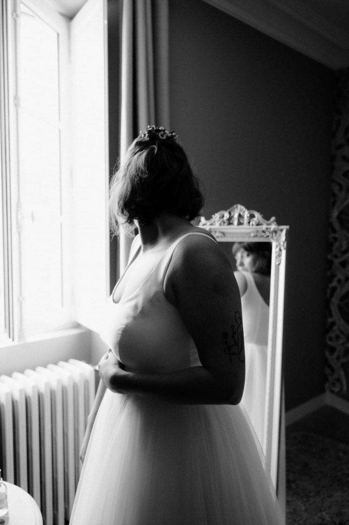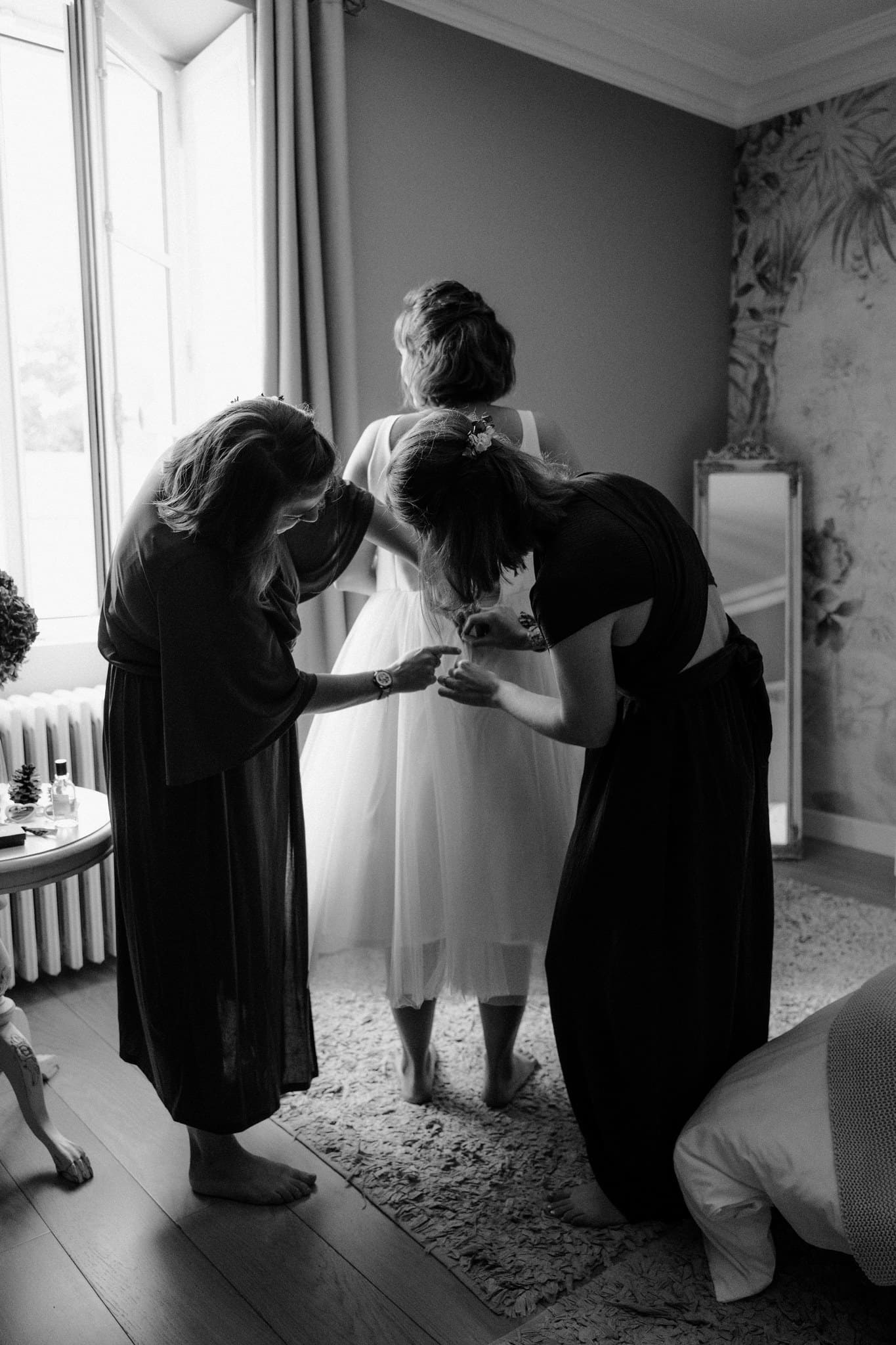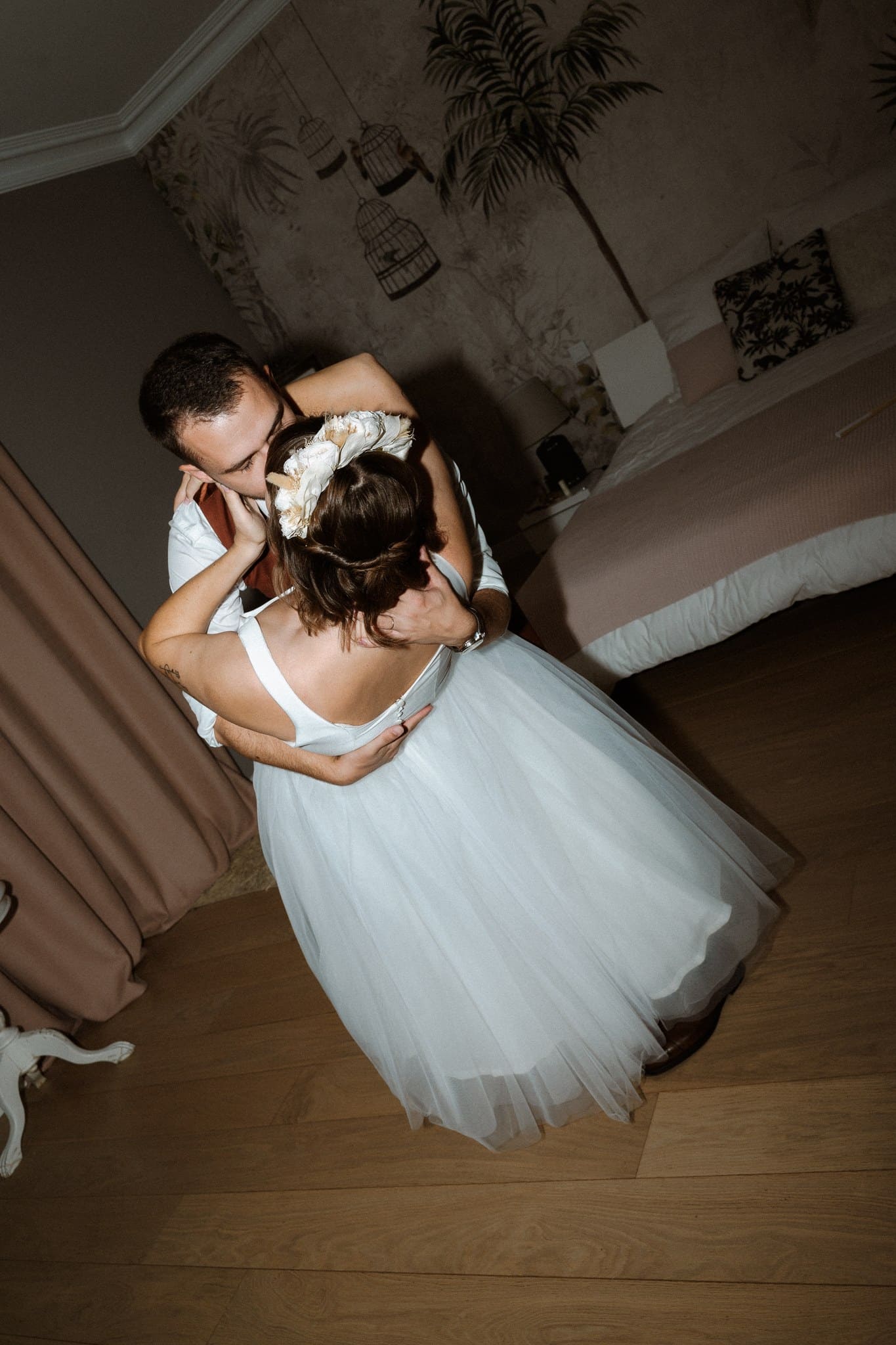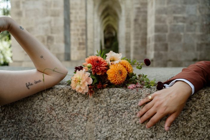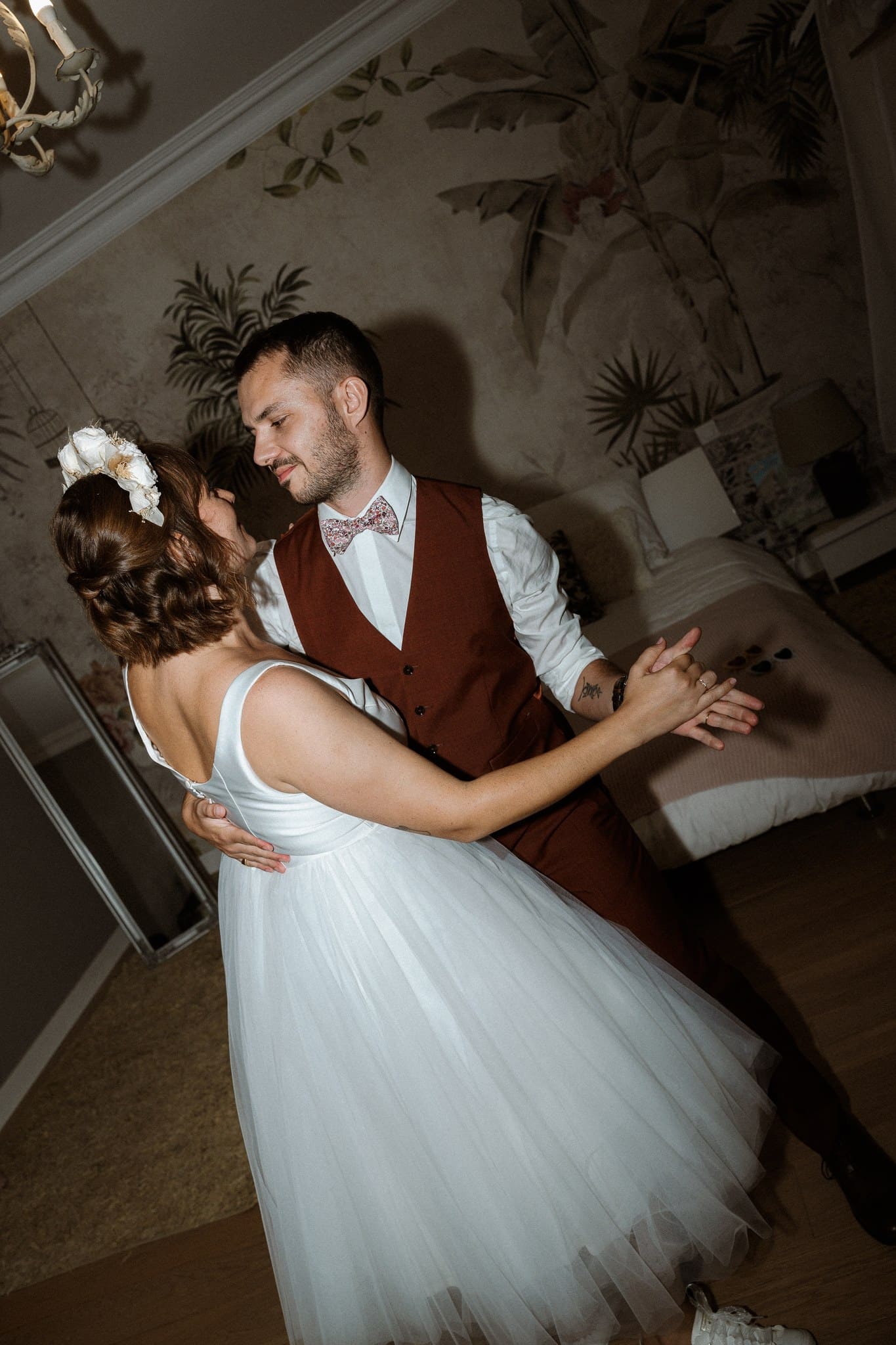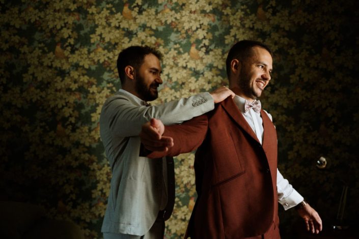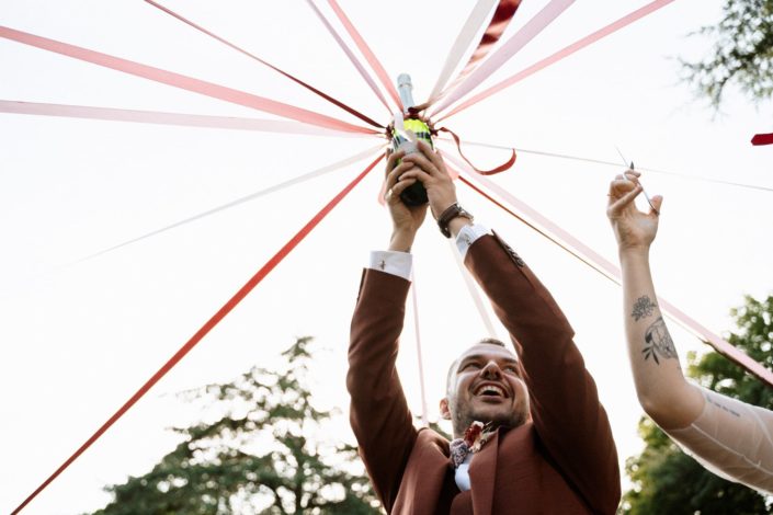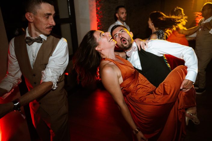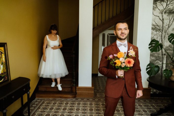 Pour la 2e robe, Mathilde a privilégié sa famille et a fait une découverte avec son papa dans la chambre des préparatifs. Puis, elle seule et de nouveau avec les copains, toujours devant le château et enfin Martin a eu le droit de la découvrir pour sa deuxième robe de mariée uniquement à la cérémonie. Autant vous dire que niveau émotion, nous aussi on en a pris pour notre grade. Ce sont des moment que l’on aime anticiper en choisissant le lieu, le moment par exemple, pour que les mariés n’ont qu’à savourer et vivre pleinement leurs émotions.