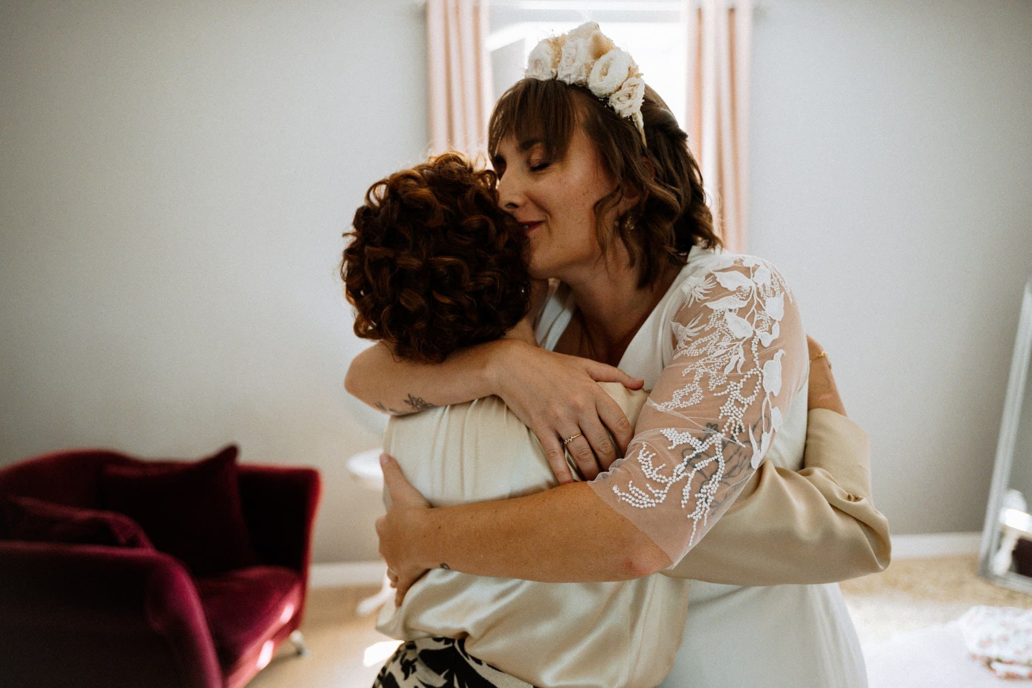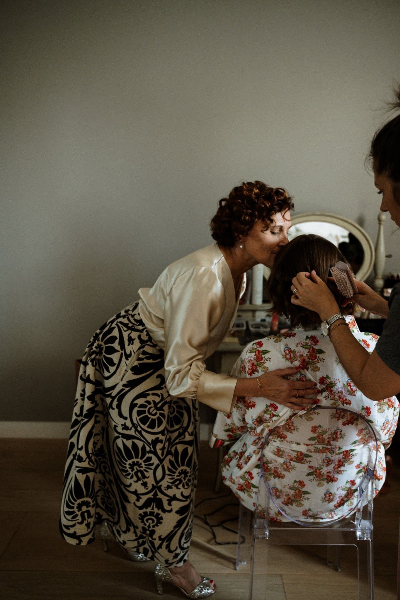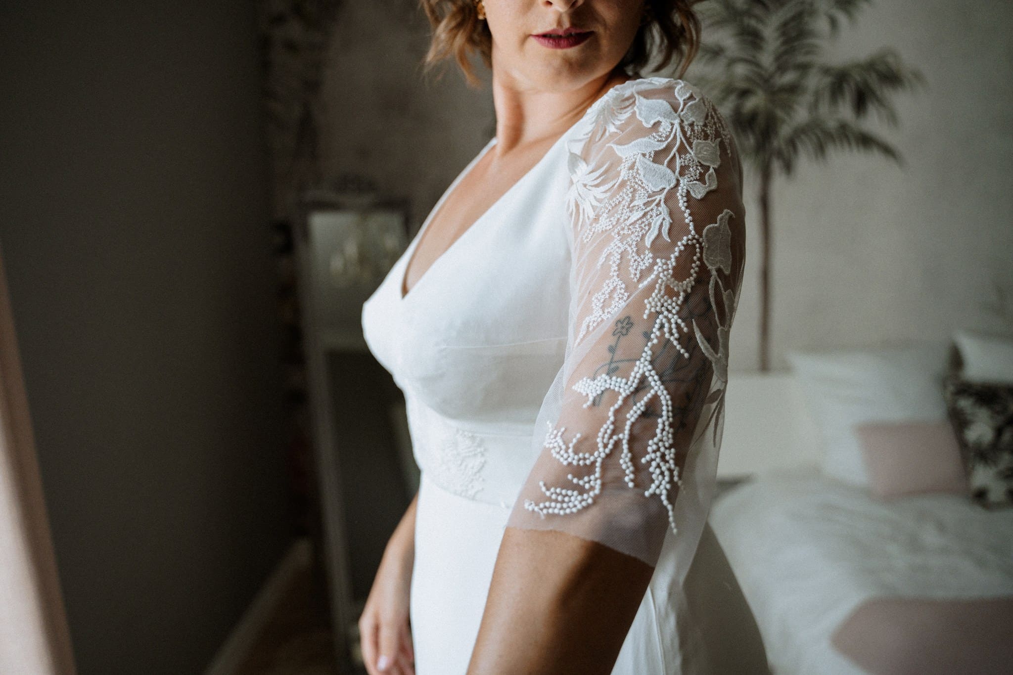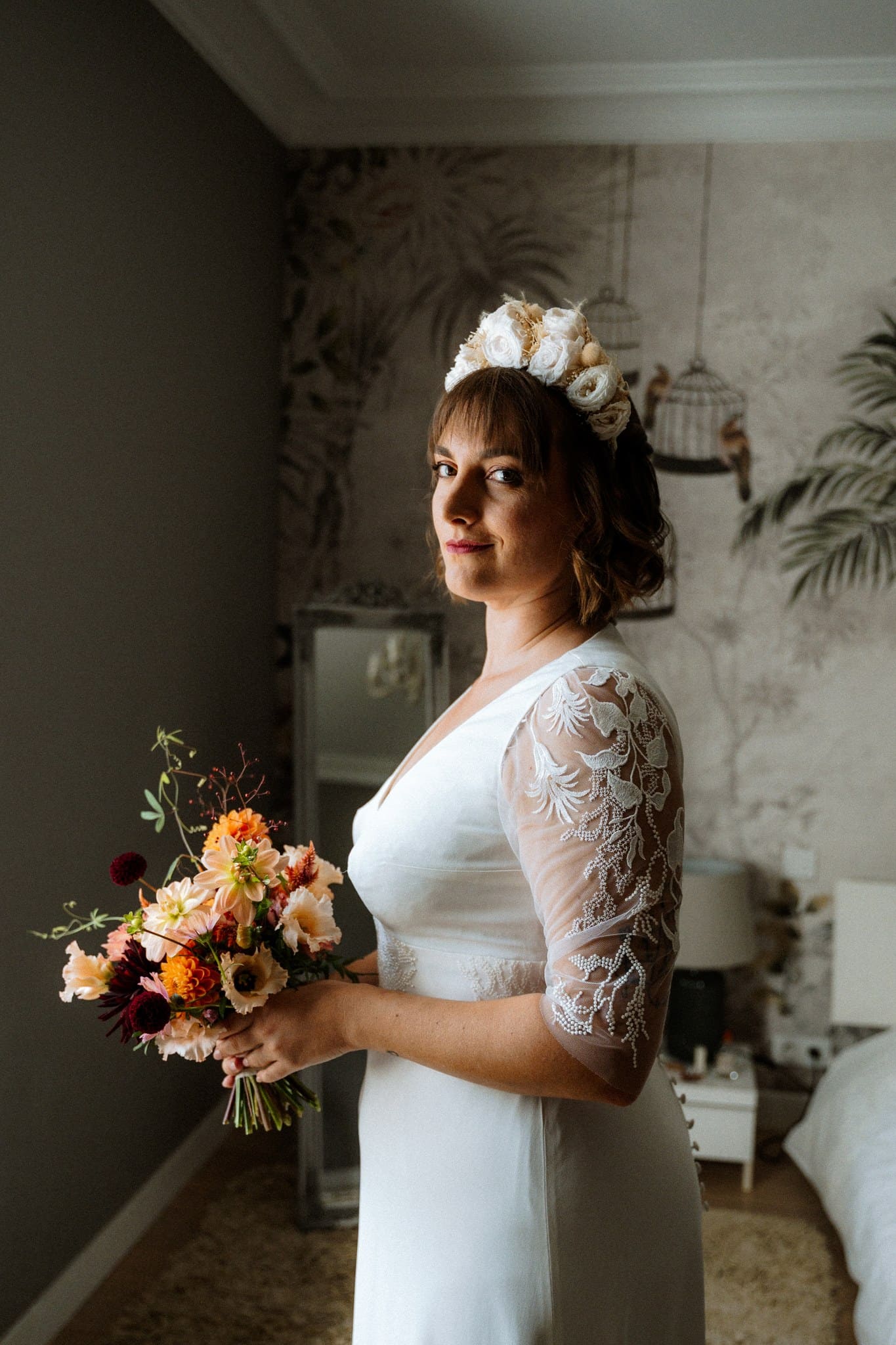 Il y aurait donc deux moments de préparation le jour J, avec deux robes de mariée différentes. Pour le premier, Mathilde souhaitait être entourée de sa team d’honneur ; pour le second, elle voulait partager ce moment avec sa maman.