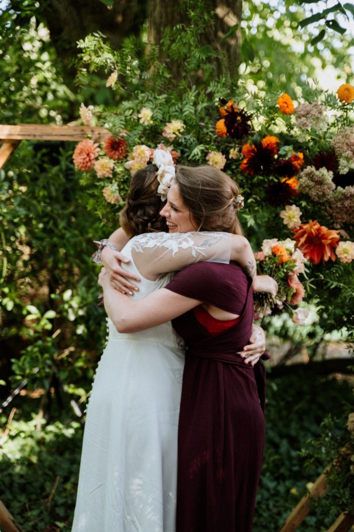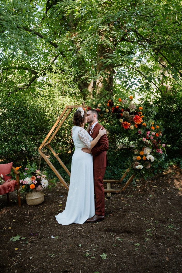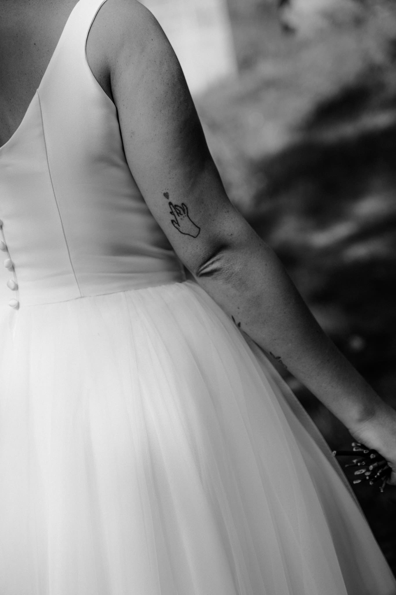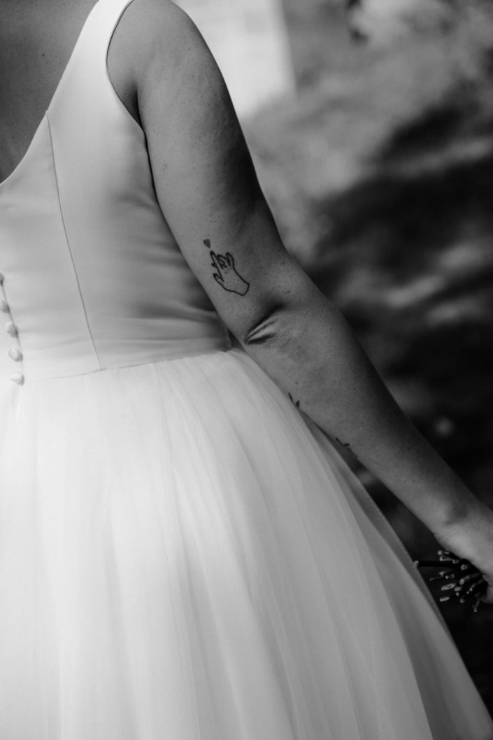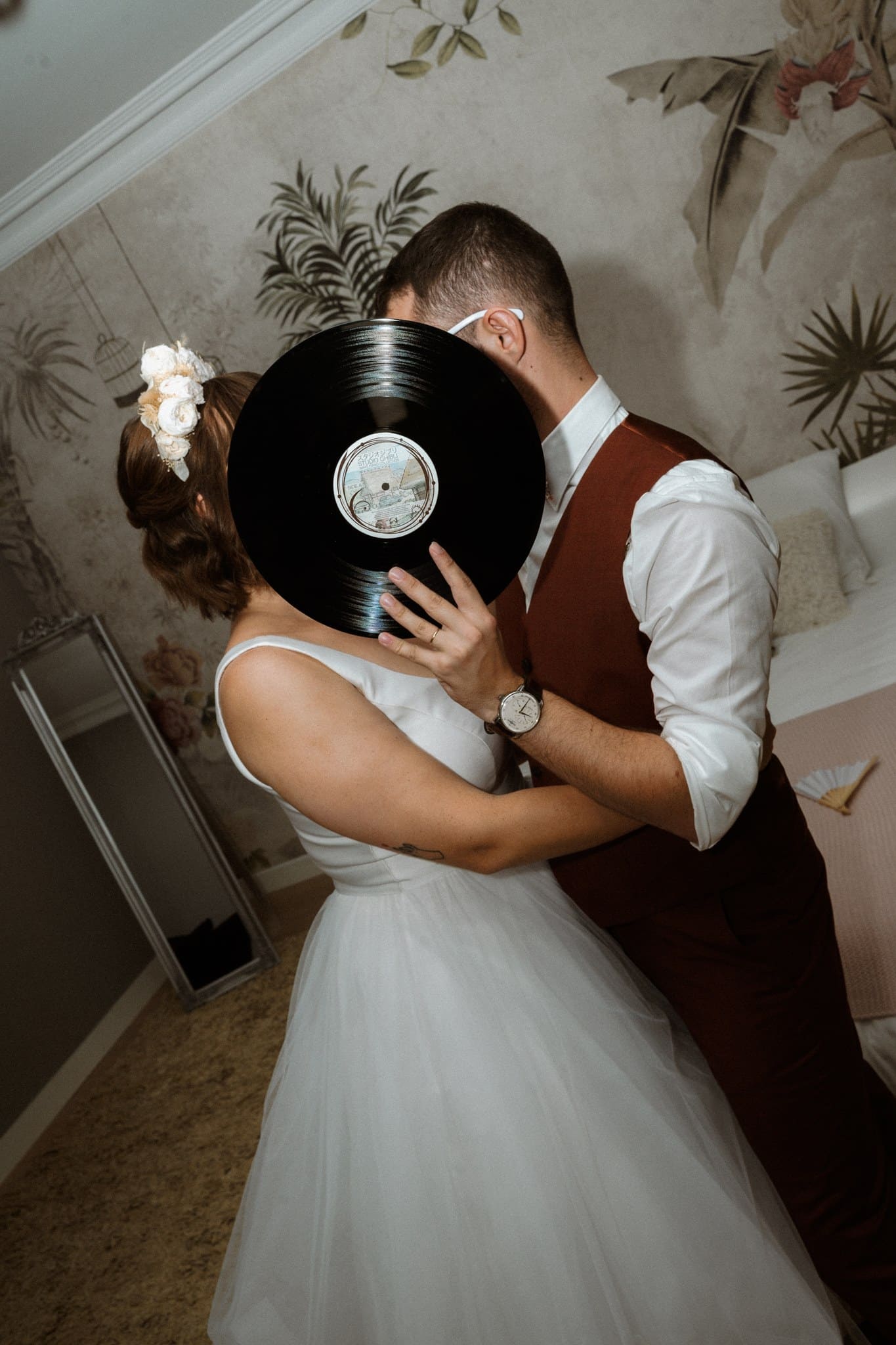 Vous connaissez les circle pit ? Et bien, nous avons découvert le concept le jour du mariage de Mathilde et Martin. Il s’agit d’une danse pendant un concert de rock où il faut tourner en rond tous ensemble sur un rythme rapide et assez musclé. Mathilde et Martin voulaient absolument apporter à leur mariage cette touche Hellfest qui les représente si bien, mais qui représente aussi l’ensemble des invités. Chaque année, ils se retrouvent tous au festival pour partager un week-end de folie. On vous laisse imaginer la playlist de la soirée dansante. C’était notre premier mariage rock n’roll et on en redemande. Martin nous a même fait une dédicace en passant Green Day, un groupe que l’on adore !
