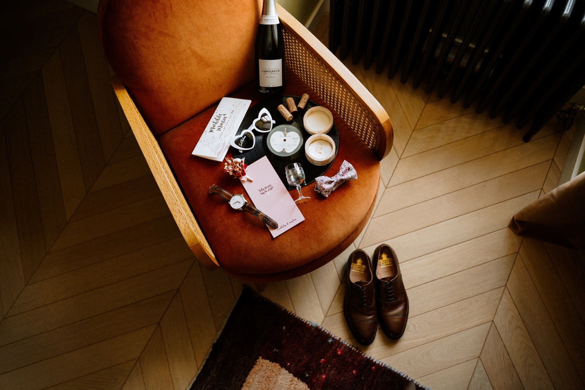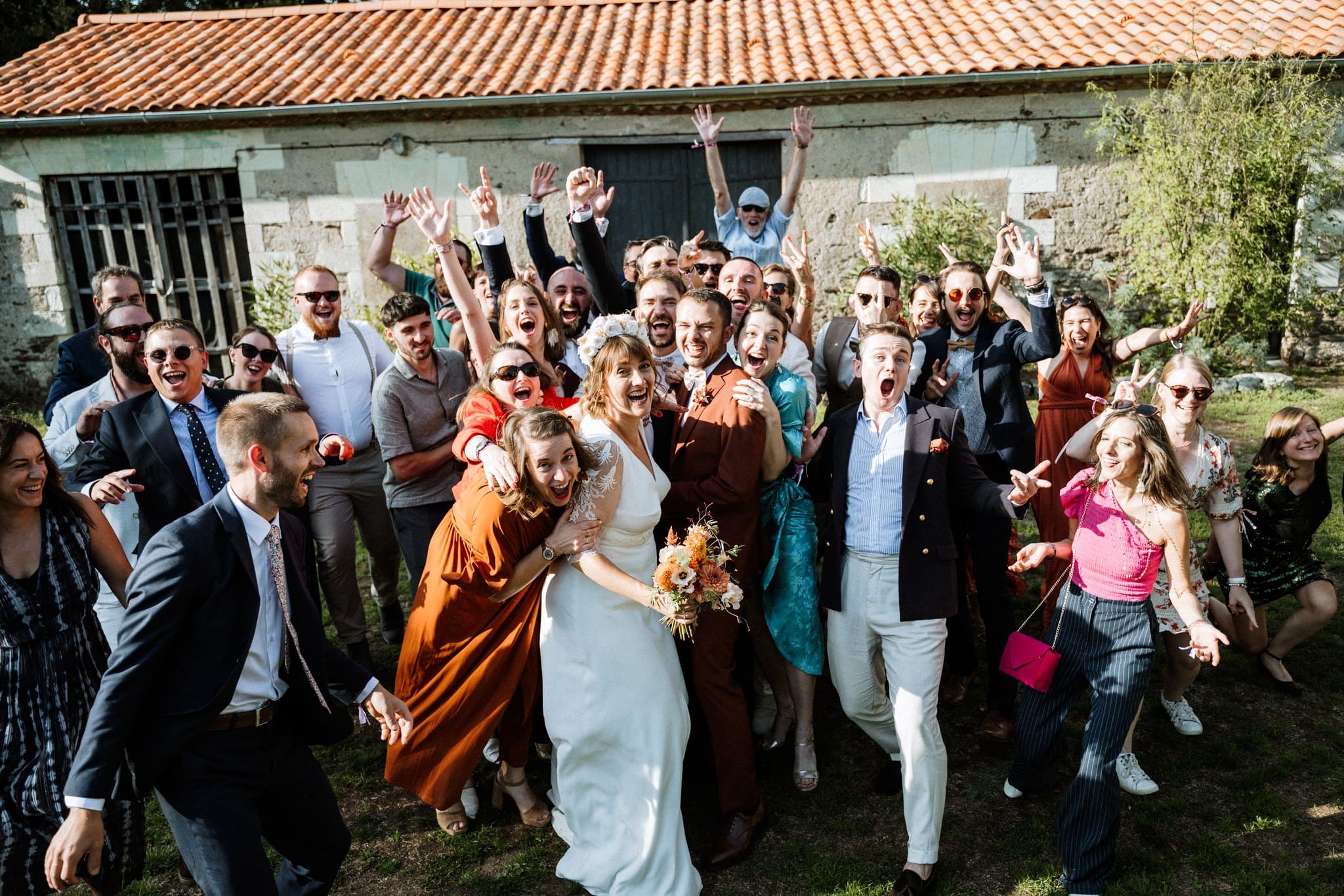 Première originalité ou vraie habitude que l’on a pris en 2025 : rencontrer nos mariés la veille de leur mariage, directement au domaine entourés de leurs proches. Un moment simple, mais qui fait toute la différence le jour J. Les invités sont beaucoup plus à l’aise avec nous, nous sommes complètement intégrés. Cela permet aussi de faire un repérage du lieu la veille, de vérifier qu’il ne manque rien niveau accessoire, toujours dans le but d’enlever du stress le jour j. Nous avons donc partagé un apéro dinatoire vendéen, parlé du Hellfest et révisé le planning tous ensemble avec les témoins et la team d’honneur.